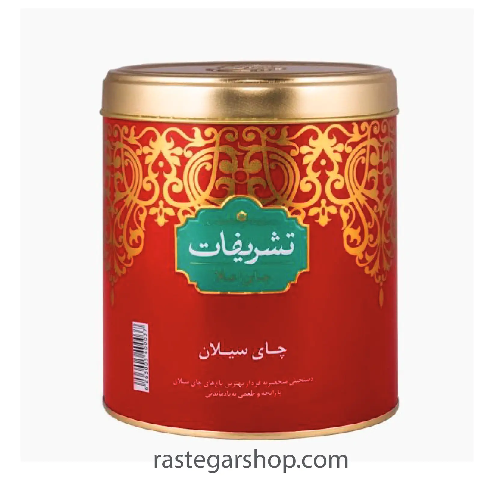 چای شکسته سیلان تشریفات ۴۵۰ گرم قوطی فلزی از برگ‌ های چای سیاه شکسته تهیه شده و دم‌ آوری سریع با رنگی مطلوب ارائه می ‌دهد. این چای با طعم و عطری اصیل، بدون افزودنی‌ های مصنوعی، تجربه‌ای خوشایند و سنتی از نوشیدن چای سیلان را فراهم می ‌کند.